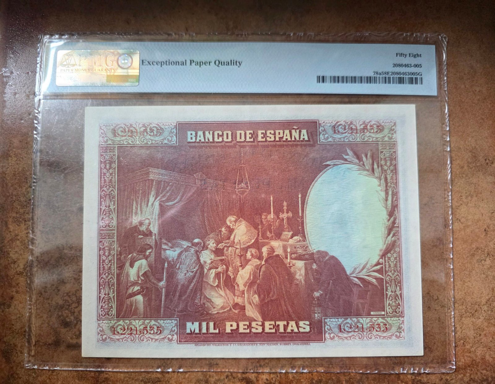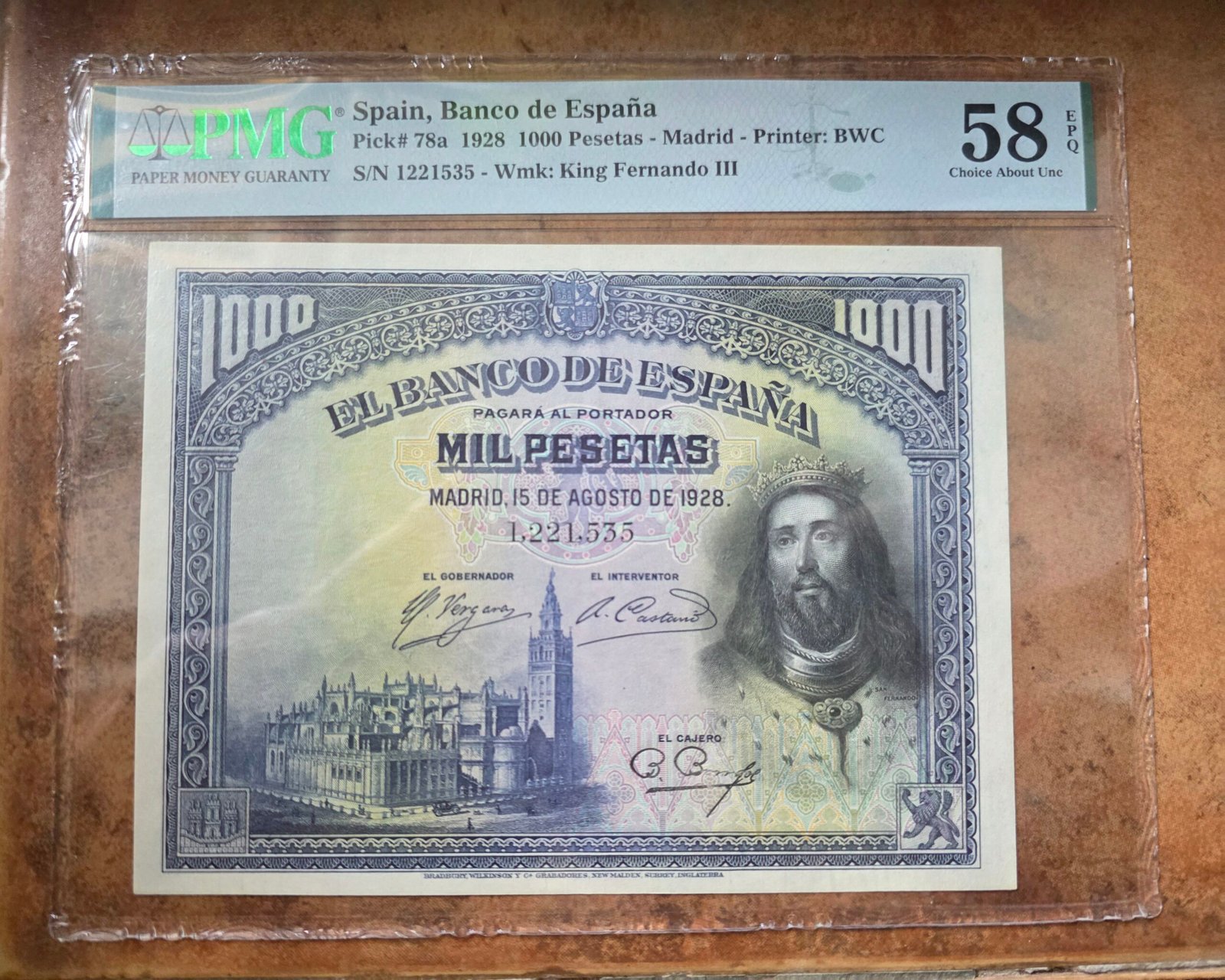 1000 pesetas 1928 San Fernando PMG 58 EPQ
