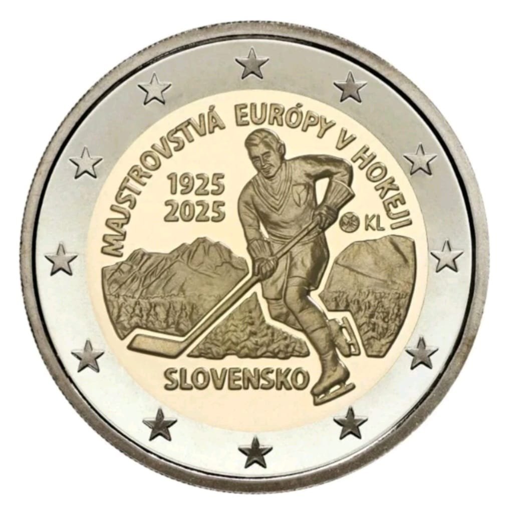 Moneda 2 euros conmemorativa 2025 Eslovaquia. Campeonato europeo de Hockey sobre hielo. Moneda nueva sin circular