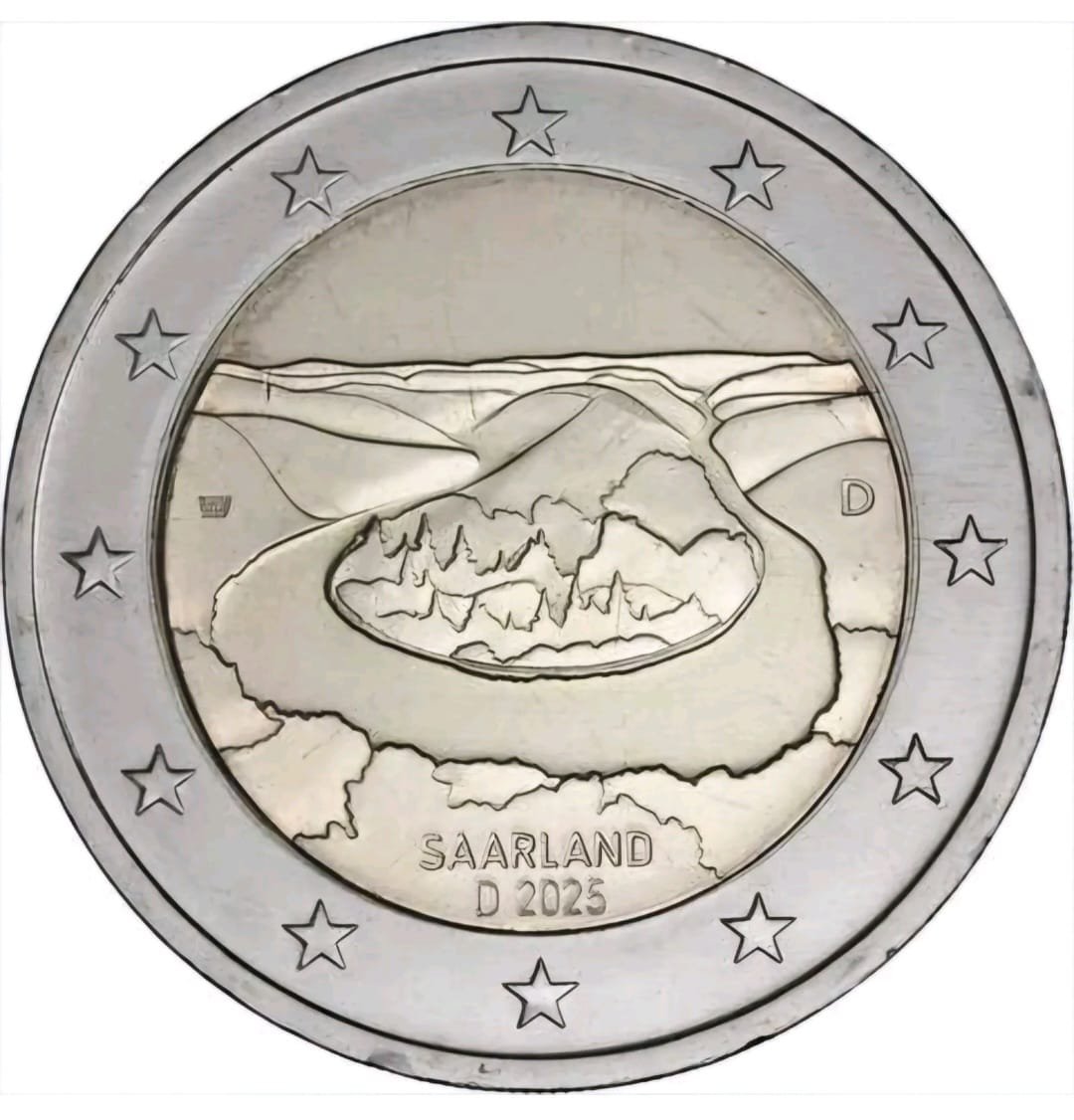 Monedas 2 euros conmemorativas 2025 Alemania. Estado de Sarre. Meandro del Sarre.