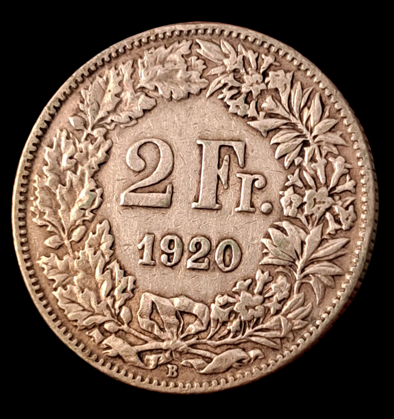 Muy buena moneda de plata de 2 francos suizos de 1920 en muy buena conservación