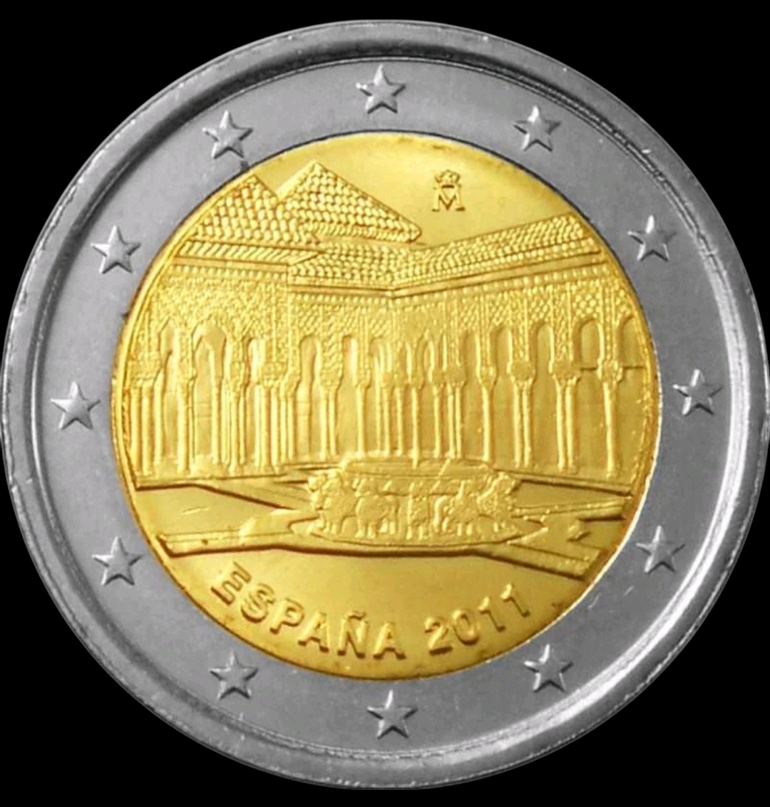 Moneda conmemorativa 2 euros España 2011. Alhambra de Granada. Patrimonio mundial. Moneda nueva sin circular.