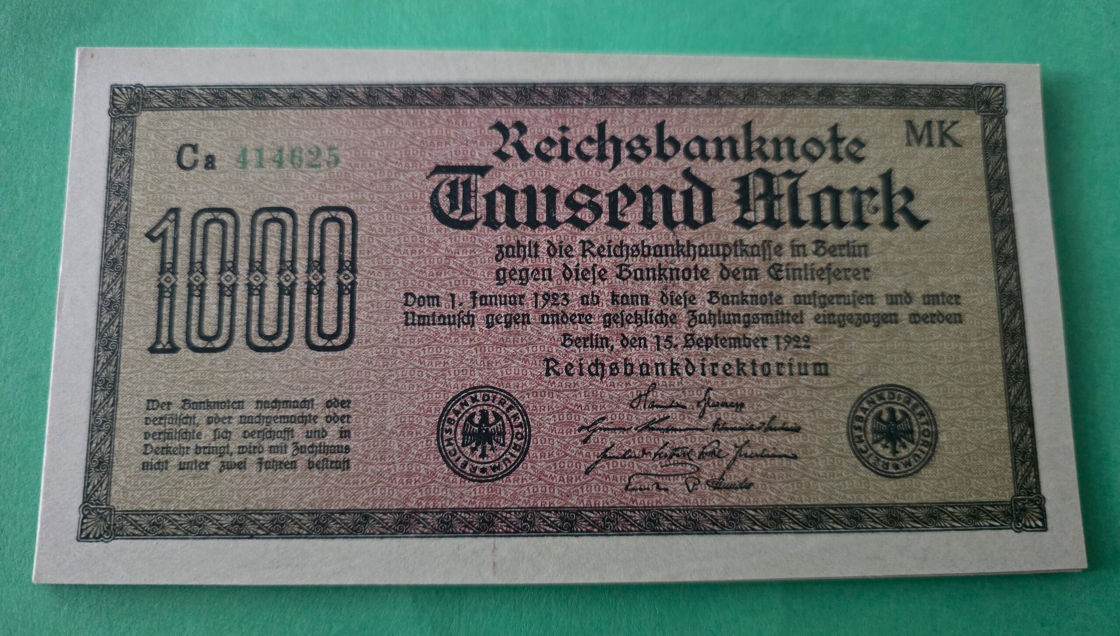 Alemania. Billete de 1000 marcos de 1922 sin circular unc