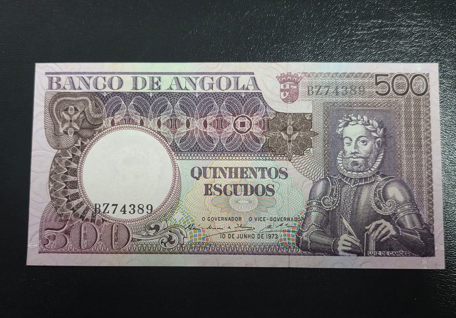 Billete de Angola de 500 escudos 1973 Luiz de Camoes sin circular