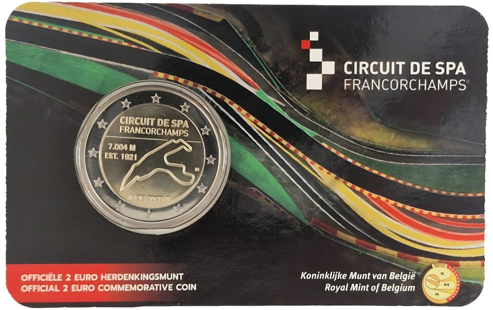 Coincard 2 euros conmemorativa 2025 Bélgica . Circuito de SPA. Moneda nueva sin circular