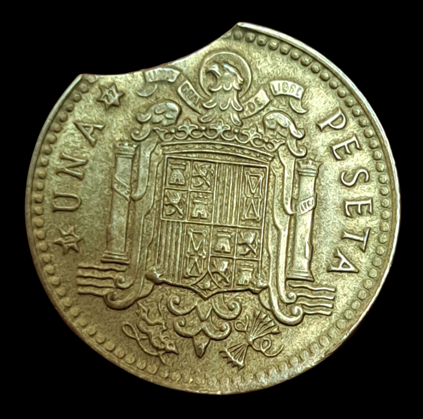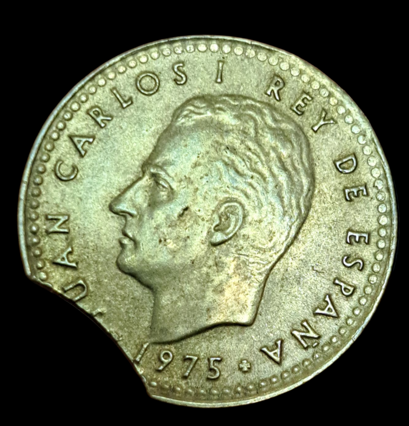 Error, moneda segmentada de 1 peseta de 1975 estrella 77 de Juan Carlos I