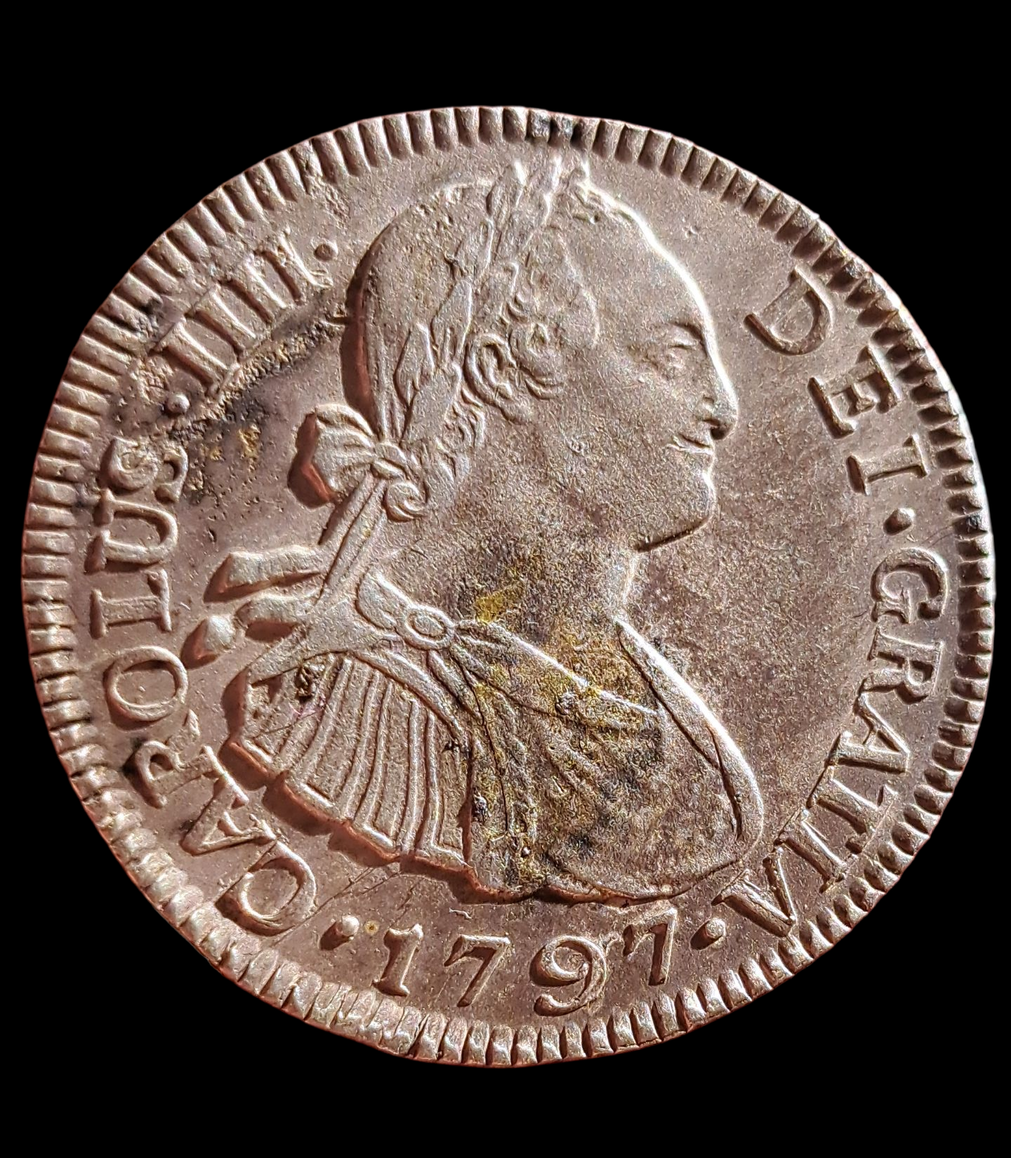Esta excepcional moneda de 2 reales acuñada en Nueva Guatemala en 1797 durante el reinado de Carlos IV, no solo es una joya numismática, sino también una pieza cargada de historia.