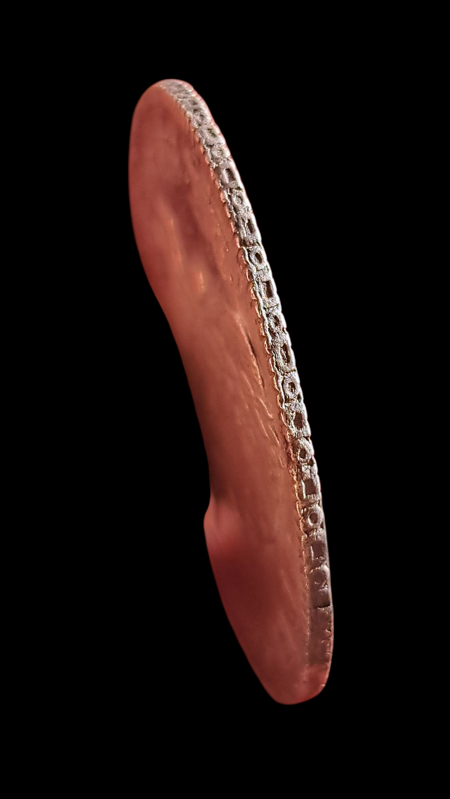 Fue recuperada de un naufragio, lo que le confiere un carácter único: las huellas del mar, como incrustaciones minerales y vestigios de coral, convierten cada detalle en un relato del paso del tiempo.